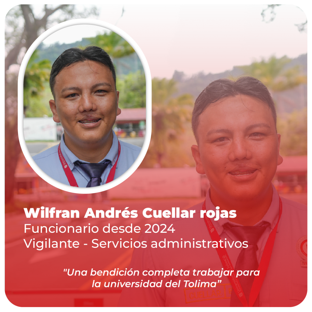 Esta galería es un reconocimiento visual a las mujeres y hombres que dan vida a la Universidad del Tolima. Rostros que representan la diversidad, el talento y la fuerza de una comunidad que ha aportado a esta casa del saber con vocación, esfuerzo y amor por el conocimiento. Cada imagen es un pedazo de nuestra historia, una mirada que nos conecta con lo que hemos sido y con todo lo que aún podemos ser.